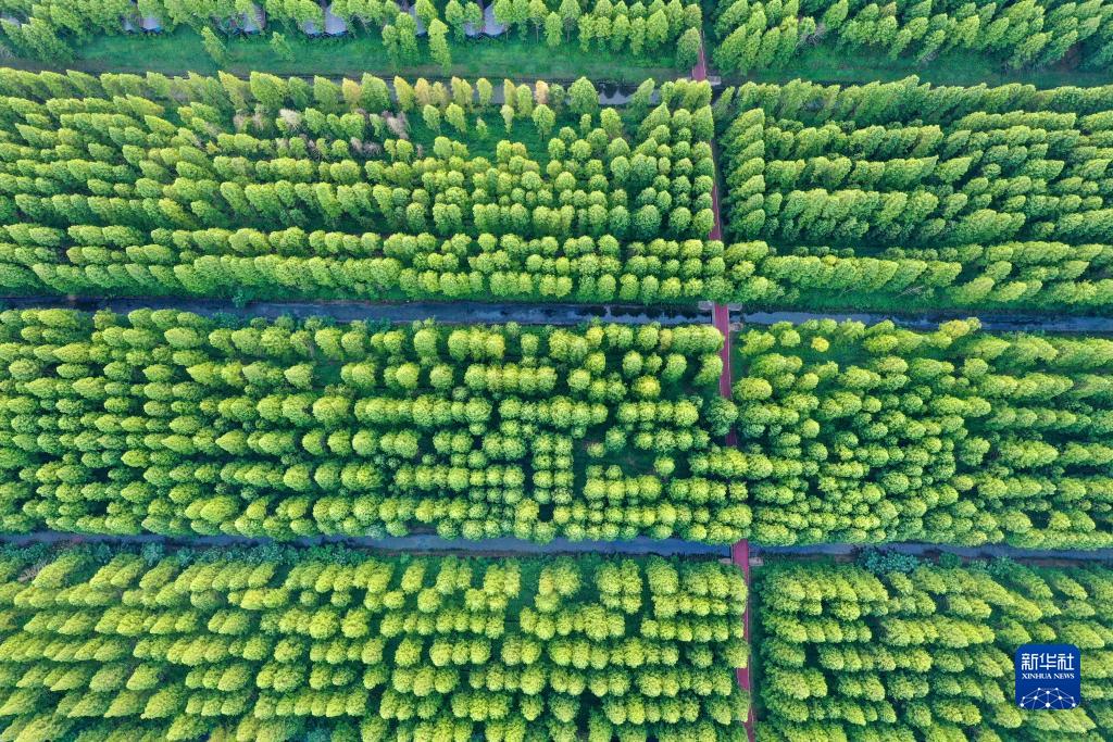 江蘇黃海海濱國家森林公園景色(2023年8月18日攝,無人機照片)。