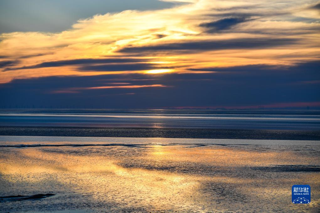 鹽城東臺條子泥濕地日出時分景色(2023年9月1日攝,無人機照片)。