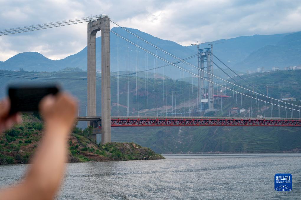 這是9月18日拍攝的白鶴灘水電站庫區的葫蘆口大橋。