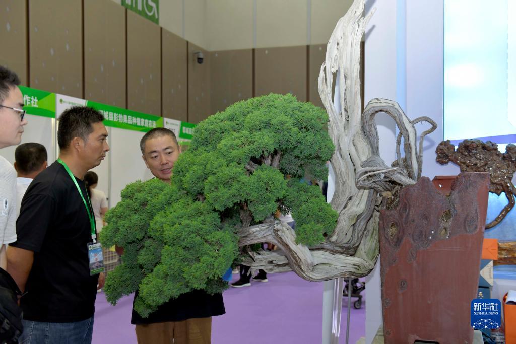 9月19日,在菏澤國際會展中心,觀眾在參觀盆景藝術。