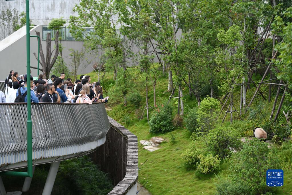 9月19日,參與金熊貓獎的中外嘉賓走進成都大熊貓繁育研究基地近距離觀看大熊貓。