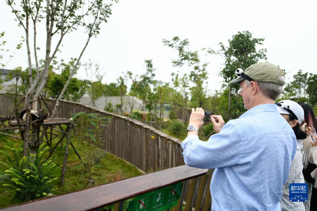 9月19日,嘉賓在成都大熊貓繁育研究基地觀看大熊貓。