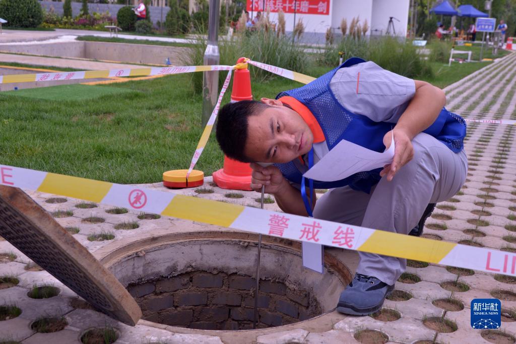 9月19日,在河北省建設行業職業技能競賽決賽現場,選手在進行供水管網漏水探測及地理信息數據測量比賽。