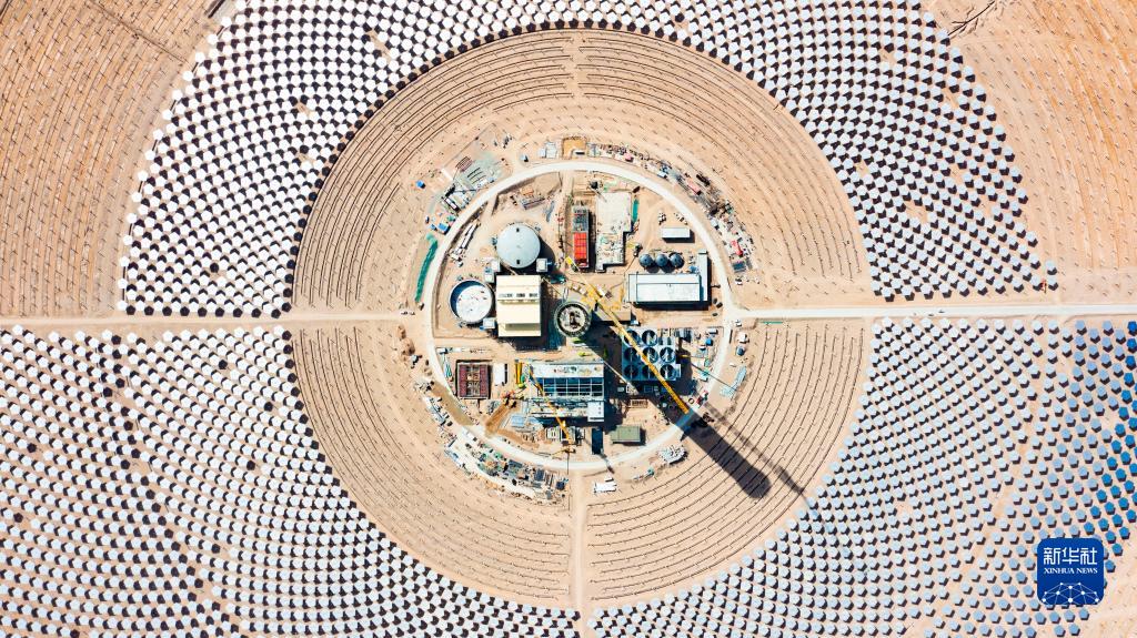 這是試點項目吸熱塔及鏡場區(9月19日攝,無人機照片)。