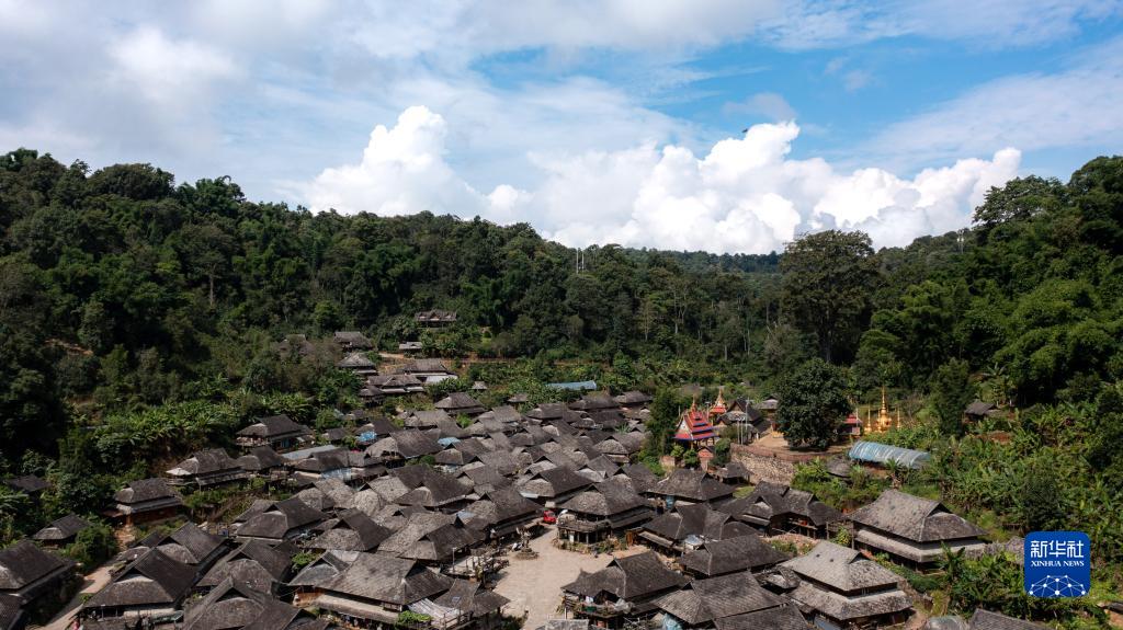9月14日拍攝的景邁山糯崗老寨一景(無人機照片)。