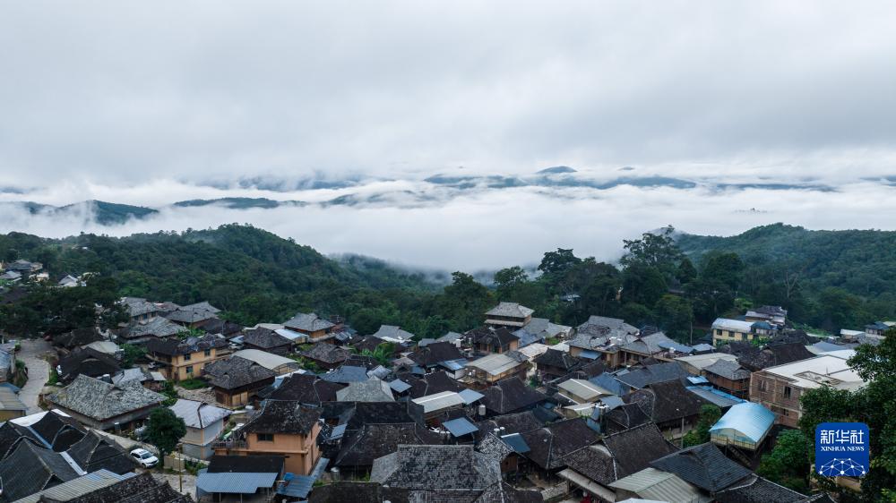 9月19日拍攝的景邁山芒洪大寨一景(無人機照片)。