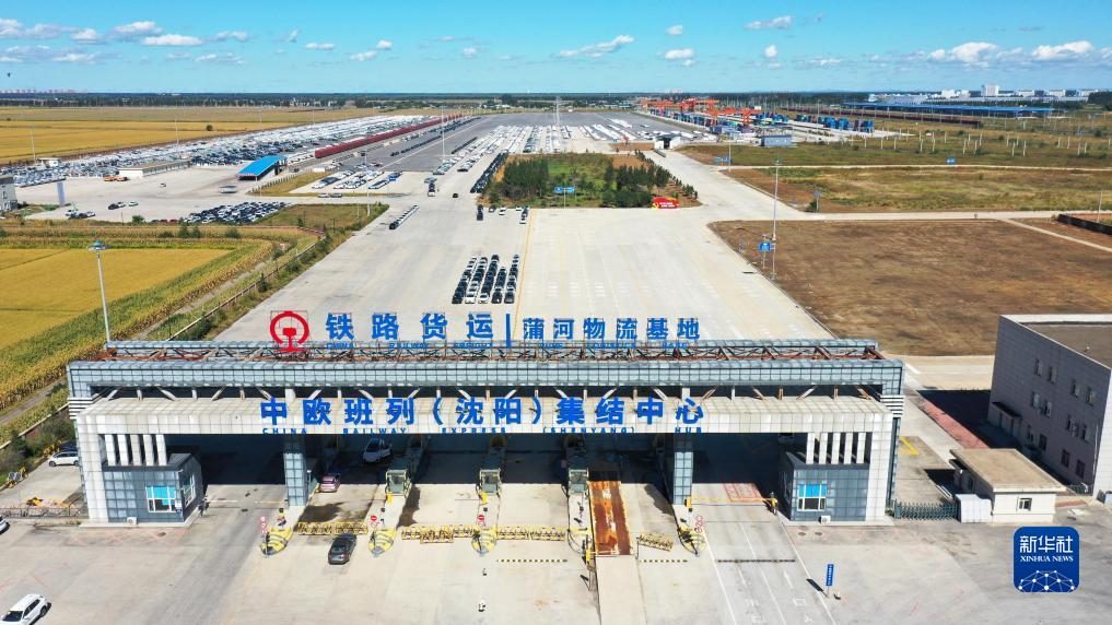 9月19日拍攝的中歐班列(沈陽)集結中心(無人機照片)。