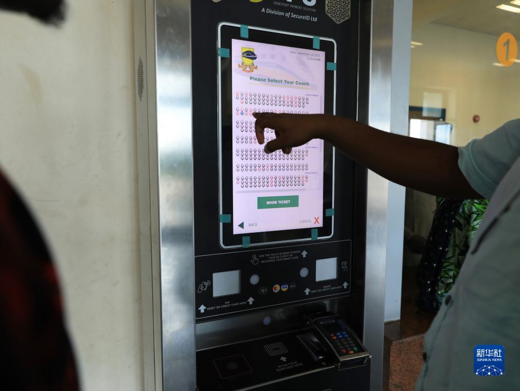 9月18日,在尼日利亞首都阿布賈的阿卡鐵路起點站伊都火車站,乘客在購票大廳進行網上購票。