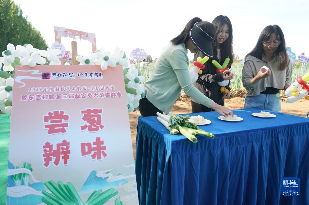 9月20日,在北京市平谷區東高村鎮趙家務村大蔥種植基地,市民在活動現場參加“嘗蔥辨味”活動。