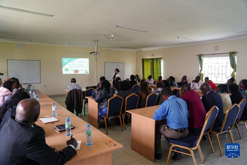 中國南京農業大學和肯尼亞埃格頓大學18日在肯尼亞納庫魯郡聯合舉辦為期一周的中非農業發展和減貧示范村番茄生產培訓班。百余名當地農業官員、農民、企業員工和學生參加。