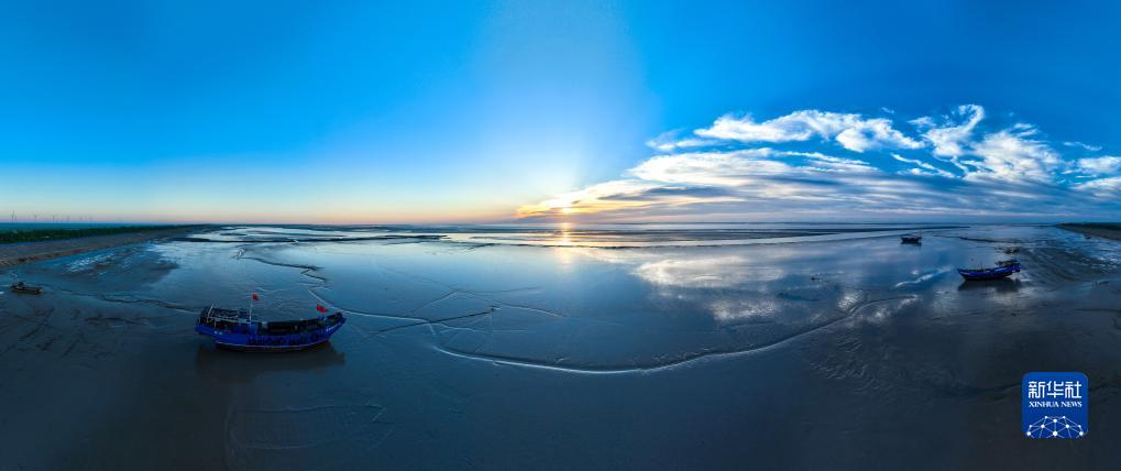鹽城東臺條子泥濕地日出時分景色(9月1日攝,無人機照片)。