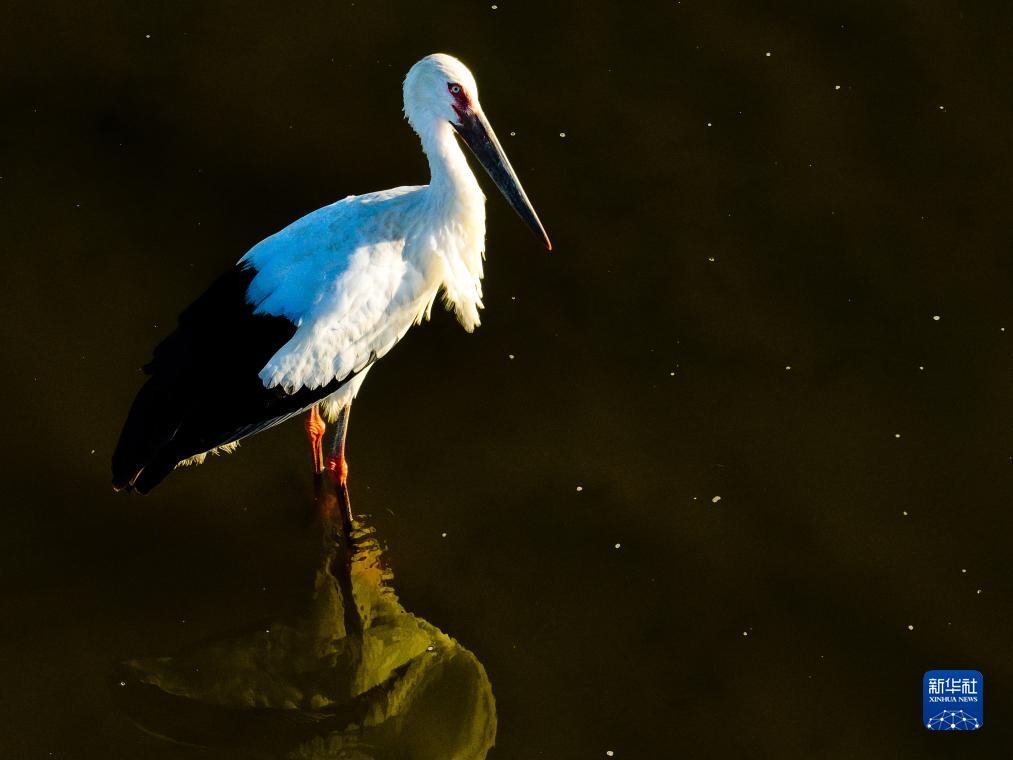 在東臺條子泥濕地拍攝的東方白鸛(9月1日攝,無人機照片)。
