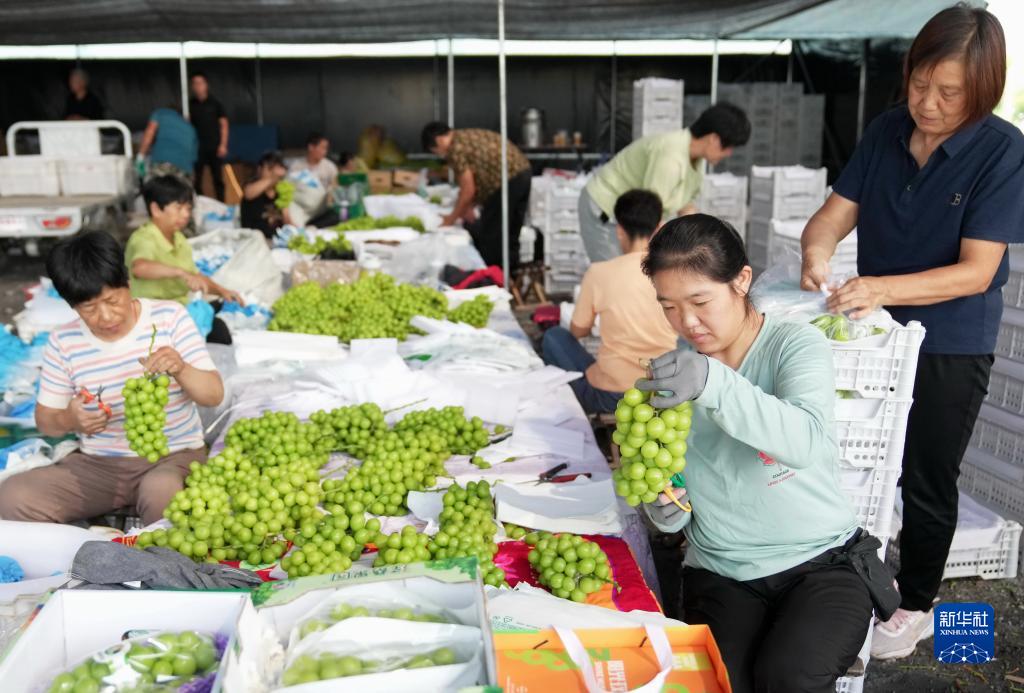 9月20日,河北省晉州市馬于鎮北辛莊村一家葡萄種植合作社的社員在將采摘的葡萄分揀、裝箱。