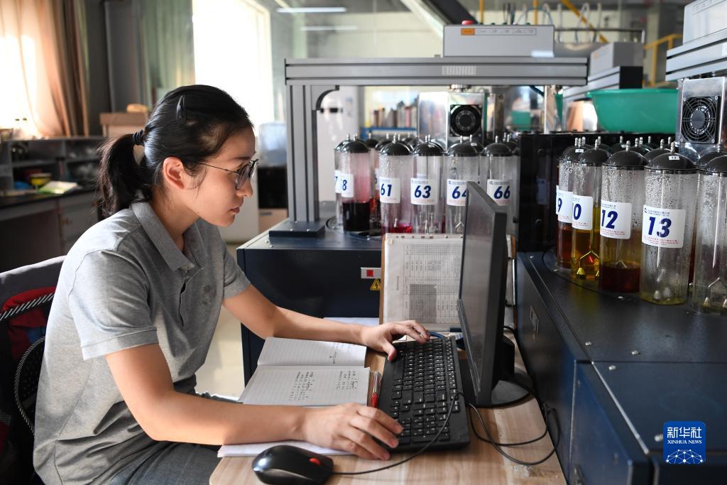 9月20日,安美橋(南宮)羊絨制品有限公司的工作人員在染料配比實驗室內工作。
