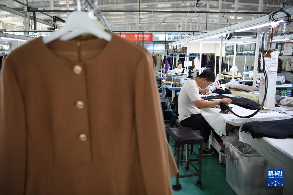 9月20日,在位于南宮市的河北鴻熙服裝股份有限公司,工人在熨燙服裝。