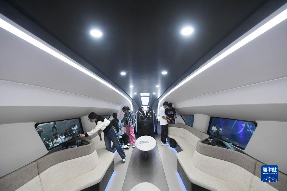 9月20日,在2023世界制造業大會上,觀眾近距離了解時速600公里高速磁浮交通系統。