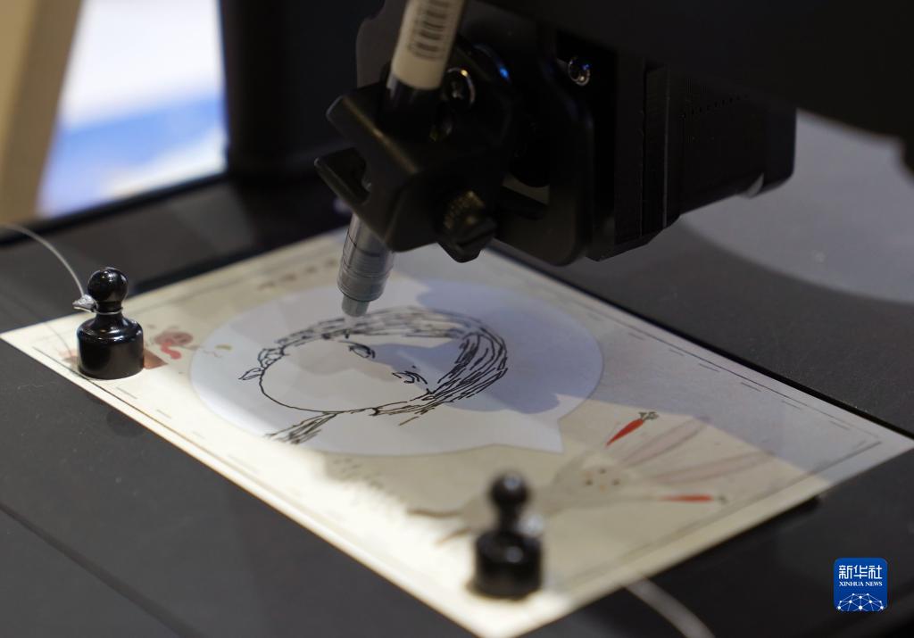 9月20日拍攝的北京大學展臺展示的妙繪畫像機器人。