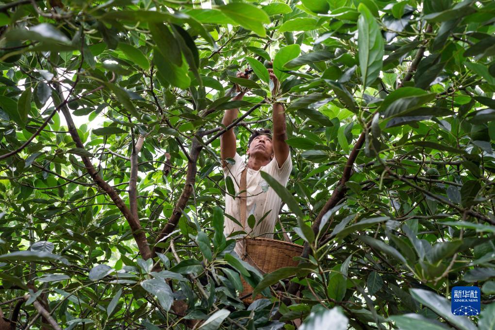 9月20日,孟連縣娜允鎮南雅村牛油果種植基地的農戶在采摘牛油果。