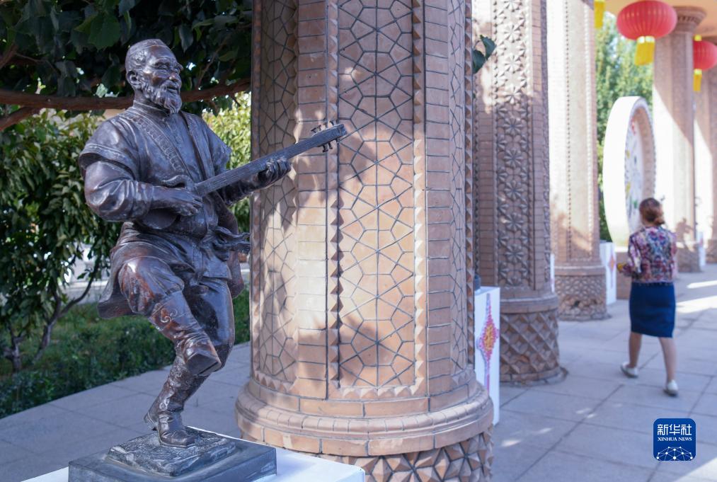 在“樂器村”擺放著十余件由廣東雕塑家贈送的雕塑作品(9月15日攝)。
