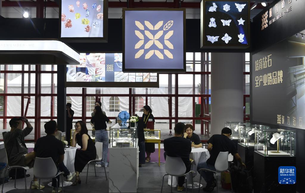 這是9月20日在鄭州國際會展中心拍攝的2023培育鉆石展銷會現場。