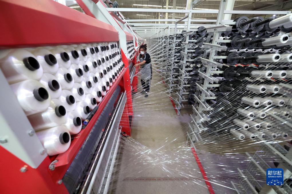 9月20日,行唐縣一家包裝生產企業工人在圓織車間內工作。