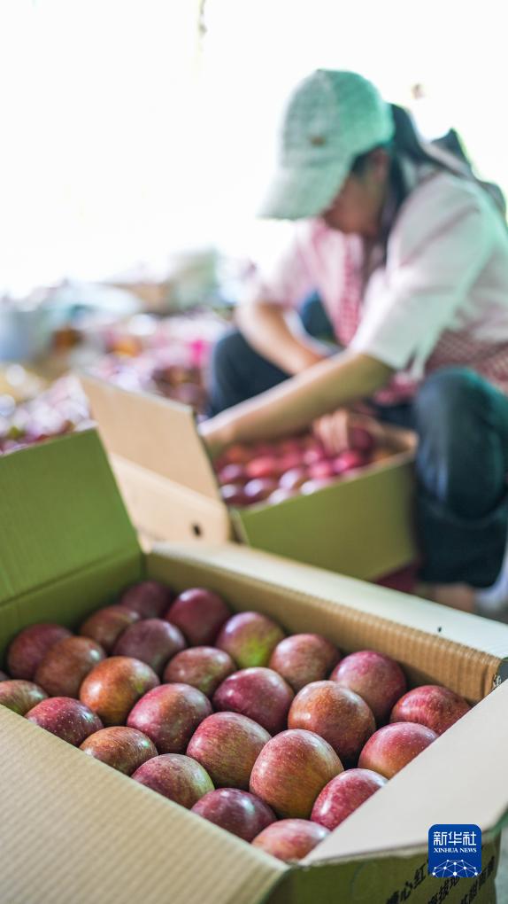 近日,貴州省畢節市威寧彝族回族苗族自治縣種植的21萬畝高山蘋果陸續迎來收獲季,果農們加緊采摘、裝運,果園內外到處是繁忙的豐收景象。