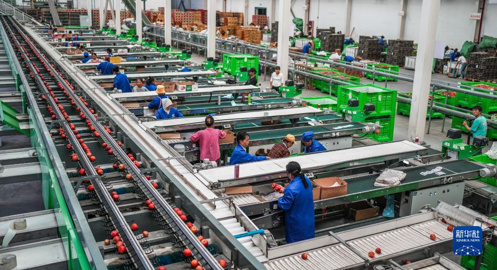 威寧產投生態果業的工人在對蘋果進行分揀(9月20日攝)。
