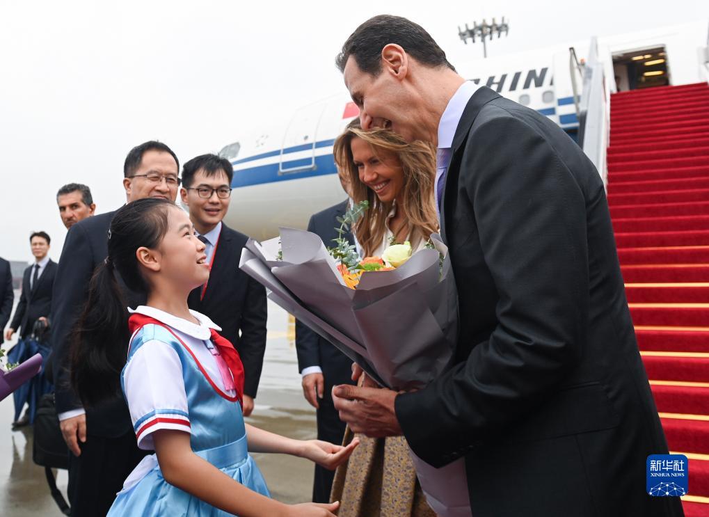 9月21日下午,來華出席杭州亞運會開幕式的敘利亞總統巴沙爾抵達浙江省杭州市。