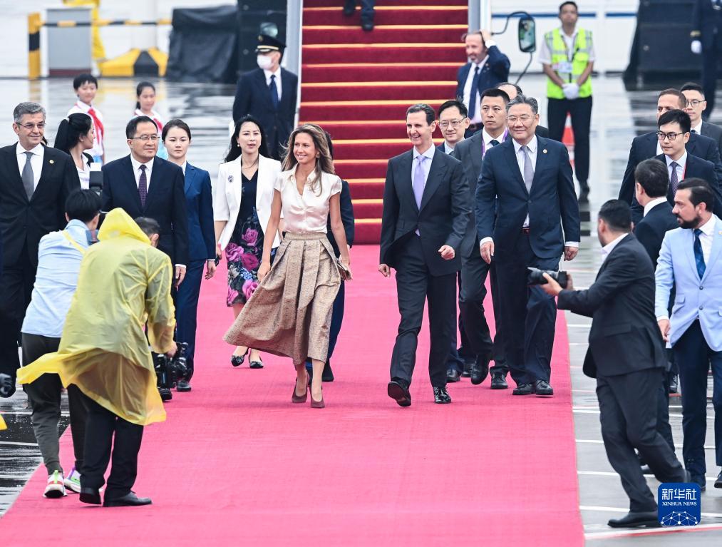 9月21日下午,來華出席杭州亞運會開幕式的敘利亞總統巴沙爾抵達浙江省杭州市。