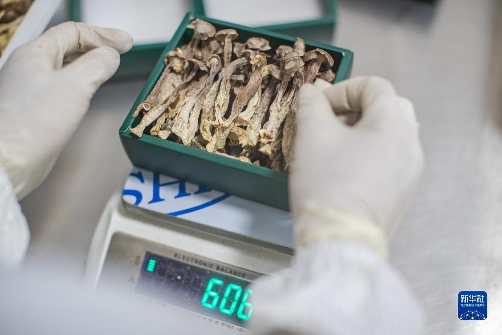 9月20日,在重慶市城口縣嶸彬農業開發有限公司,工人將風干后的食用菌稱重裝袋。