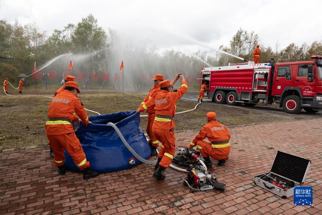 在長白山國家級自然保護區王池保護管理站,風災區專業撲火隊正在開展森林火災應急處置、撲救技戰術、緊急避險等方面的訓練(9月17日攝)。