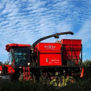 9月20日,在山東省新泰市禹村鎮,一臺玉米聯合收割機在收獲成熟的玉米。