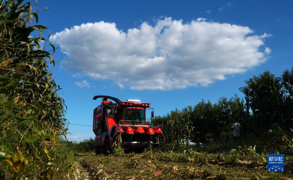 近日,山東省新泰市40余萬畝秋糧進入成熟收獲期,當地農戶利用晴好的天氣開展秋糧收割、晾曬、倉儲等工作,確保秋糧顆粒入倉。