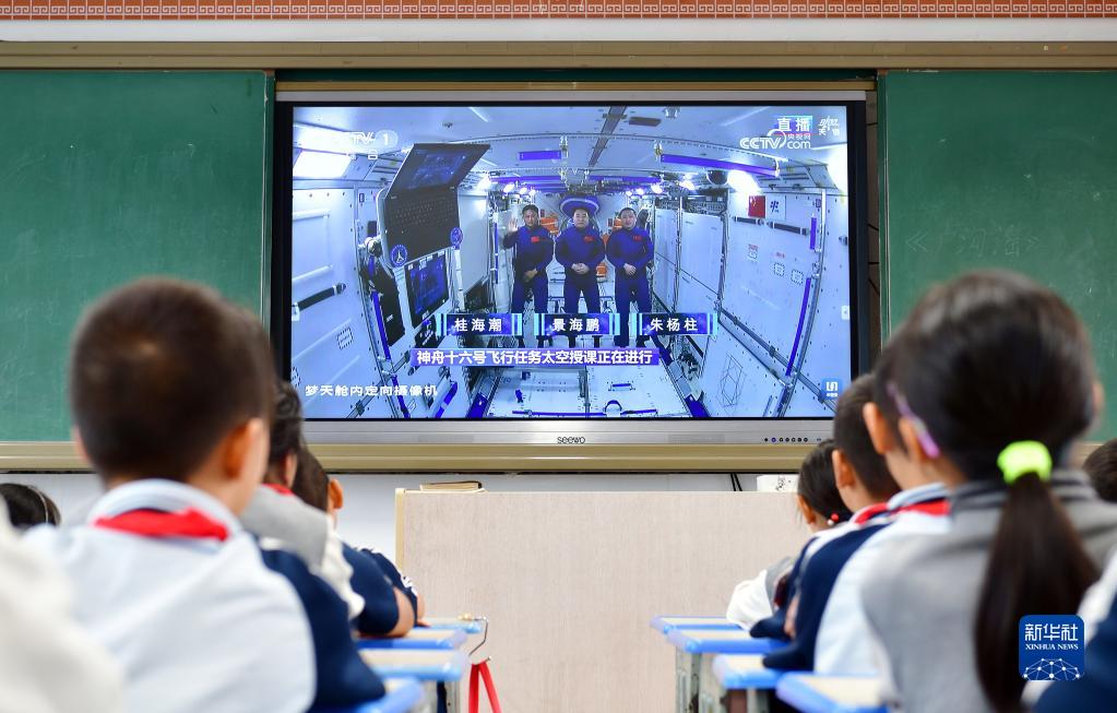 “天宮課堂”第四課在中國空間站正式開講,神舟十六號航天員景海鵬、朱楊柱、桂海潮進行授課。本次太空授課活動繼續采取天地互動方式進行,共設立北京航空航天大學等5個地面課堂。3名航天員將在軌展示介紹中國空間站夢天實驗艙工作生活場景,演示球形火焰實驗、奇妙“乒乓球”實驗、動量守恒實驗以及又見陀螺實驗,并與地面課堂進行互動交流。