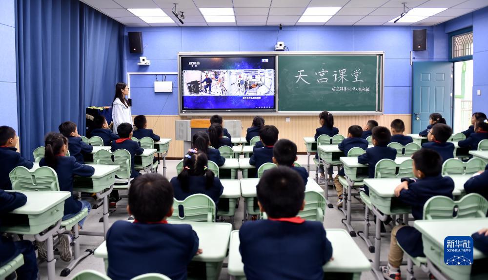 9月21日,在安徽省合肥市安慶路第三小學大楊分校,學生收看“天宮課堂”第四課。