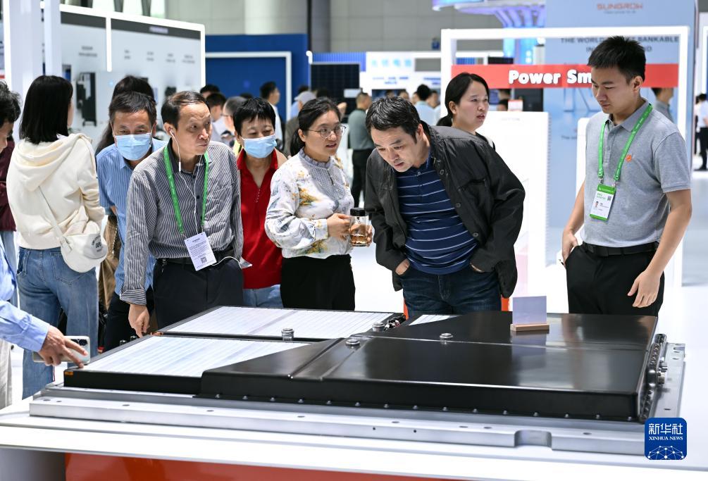 9月21日,觀眾在2023世界制造業大會參觀一款新能源汽車電池包。