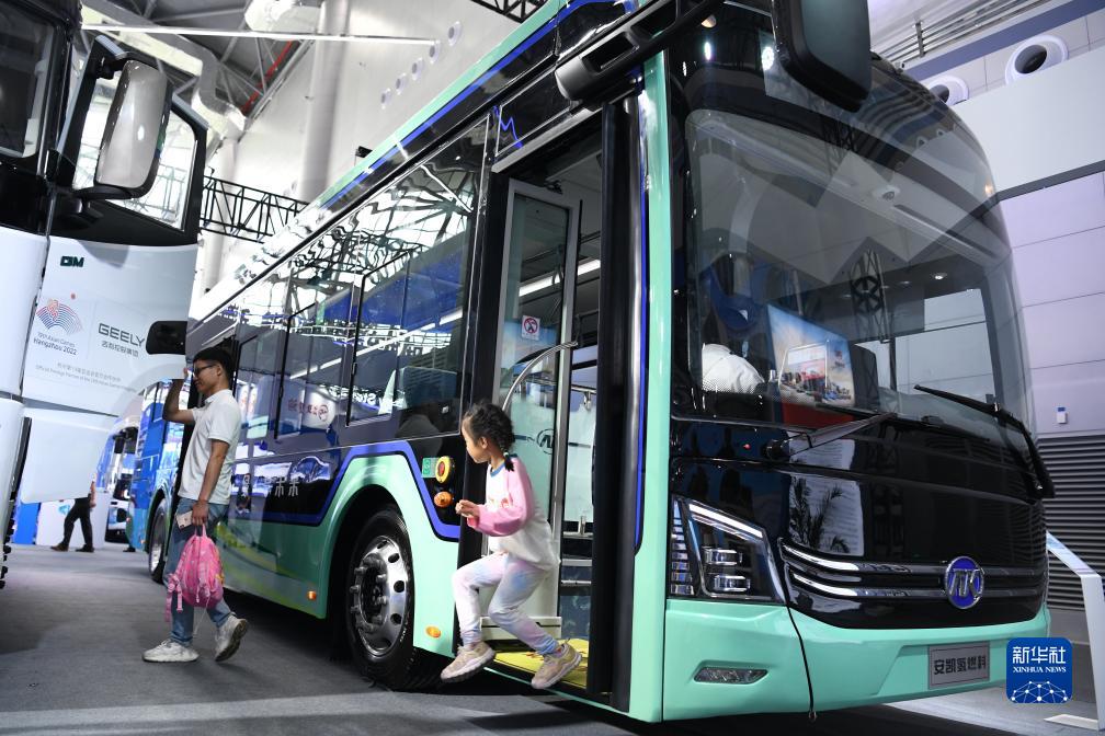 這是2023世界制造業大會上展出的氫燃料城市客車(9月21日攝)。