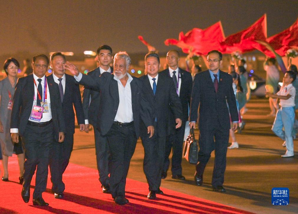 9月21日晚,來華出席杭州亞運會開幕式的東帝汶總理夏納納抵達浙江省杭州市。
