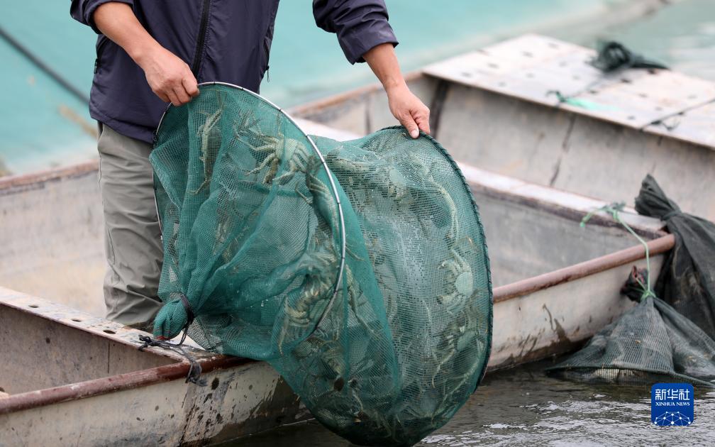 9月21日,江蘇省淮安市洪澤區西順河鎮蟹農在捕撈大閘蟹。