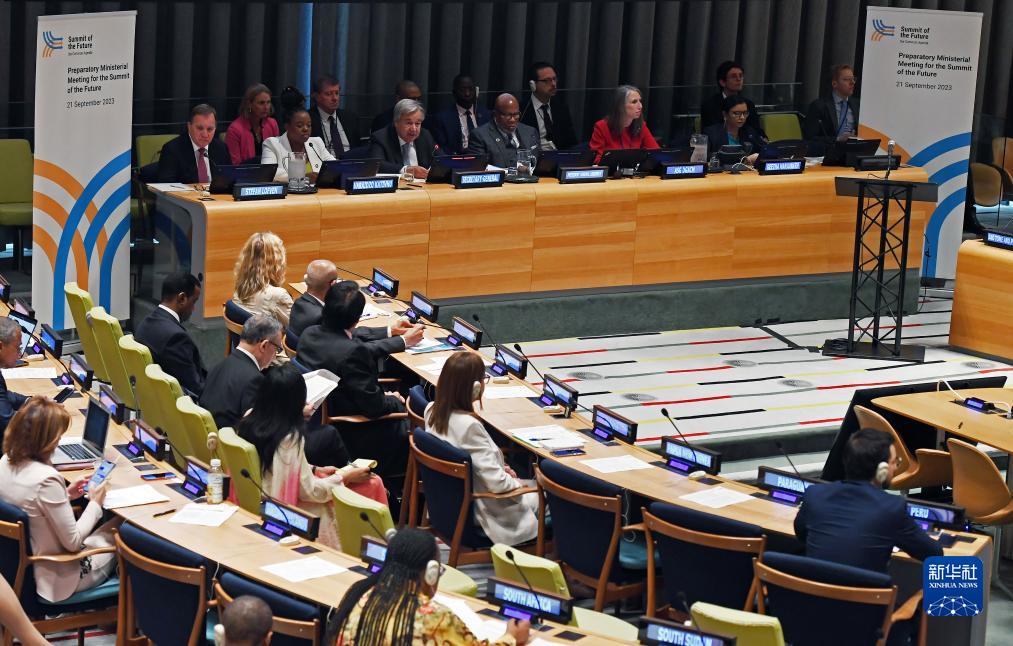 9月21日,在位于紐約的聯合國總部,聯合國秘書長古特雷斯在未來峰會部長級籌備會上講話。