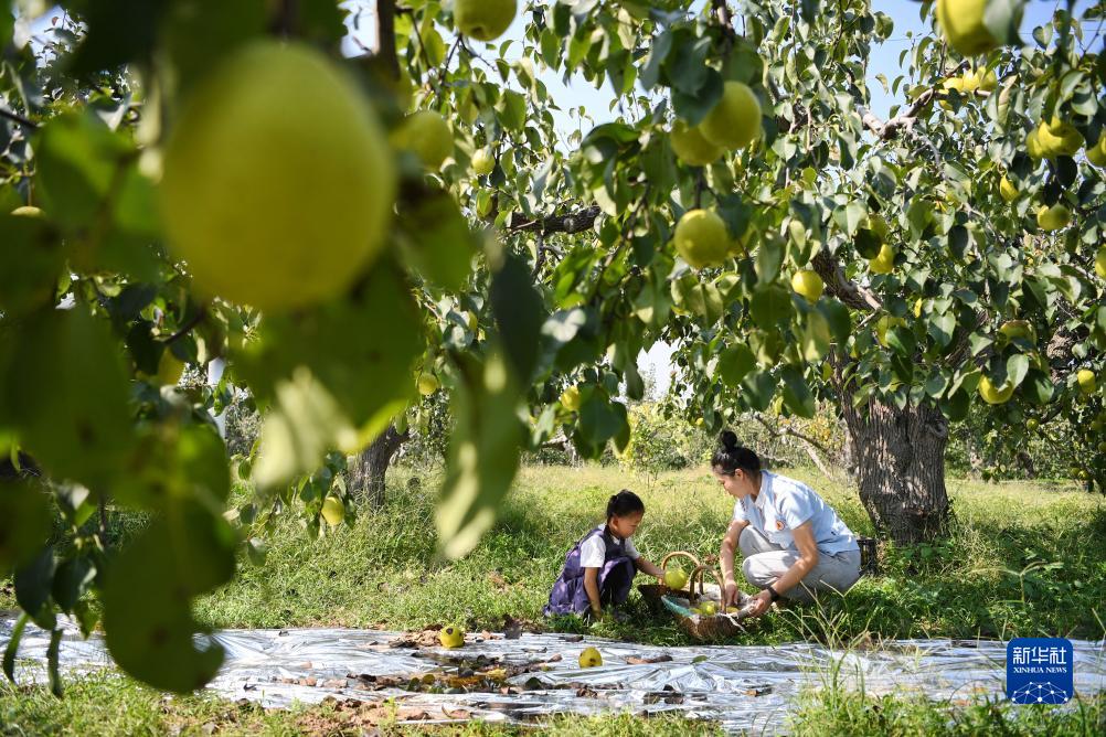 9月22日,游客在趙縣樂植堂梨果種植專業合作社的梨園內采摘雪花梨。新華社記者 牟宇 攝