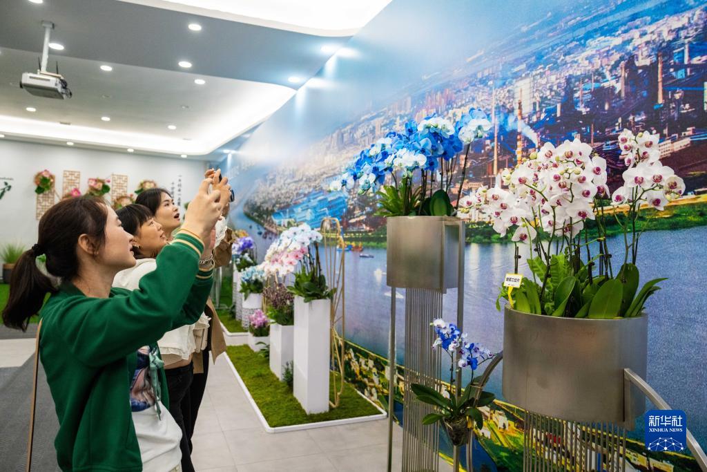 9月22日,在湘潭盤龍大觀園,觀眾們在給展出的綠植拍照。