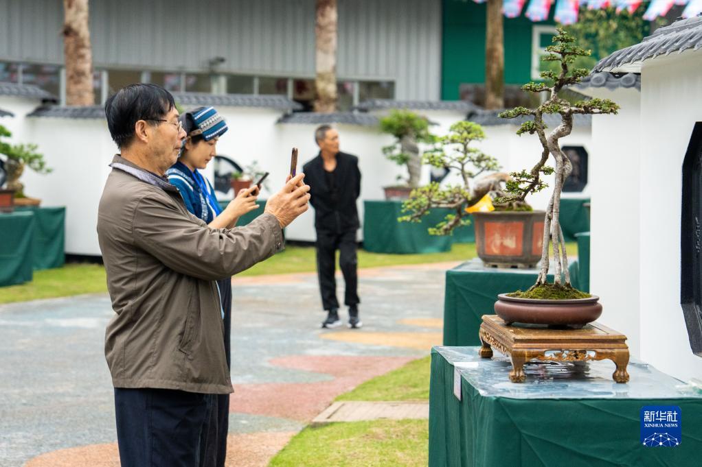 9月22日,在湘潭盤龍大觀園,觀眾在給展出的盆景拍照。