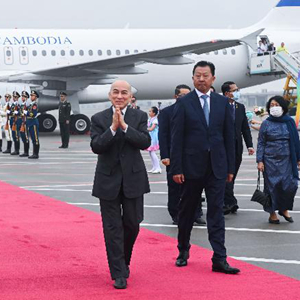 杭州亞運會丨柬埔寨國王西哈莫尼抵達杭州