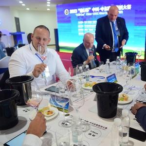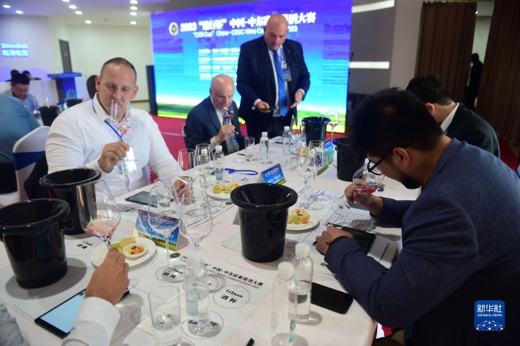 9月22日,中外品酒師在中國-中東歐葡萄酒大賽上品評葡萄酒。