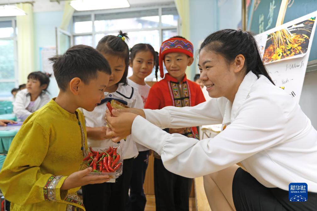 當日,遼寧省沈陽市南京一校長白島一分校舉辦以“豐收文化節”為主題的校園活動,老師帶領孩子們創作豐收節的藝術作品,了解豐收傳統民俗。