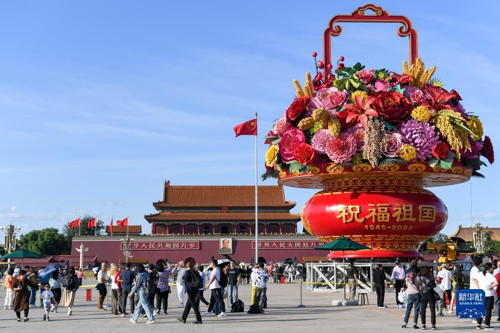 這是9月22日拍攝的天安門廣場上的“祝福祖國”巨型花籃。