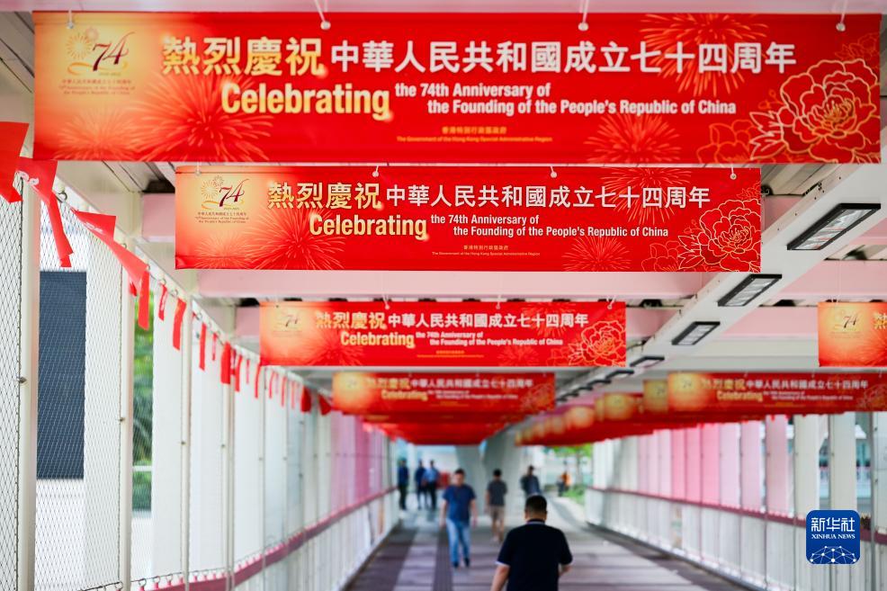 國慶節將至,香港街頭張貼國慶海報,慶祝中華人民共和國成立74周年。