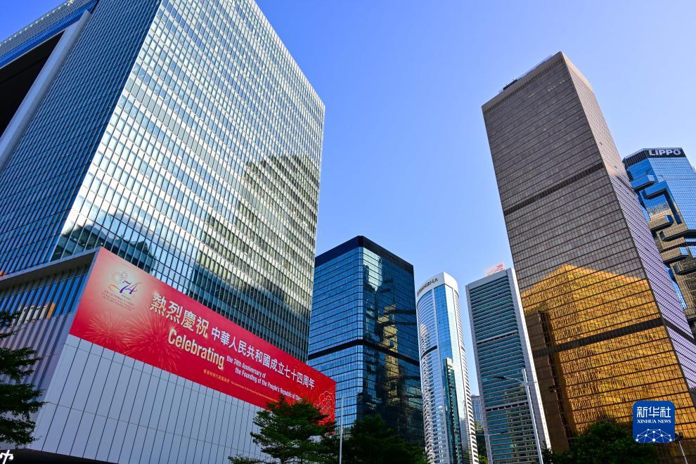 國慶節將至,香港街頭張貼國慶海報,慶祝中華人民共和國成立74周年。