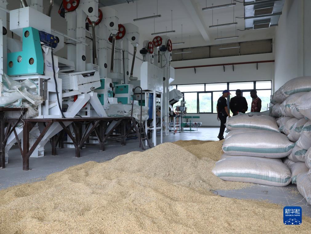 這是9月19日在尼日利亞阿布賈的中國援尼日利亞農業技術示范中心拍攝的碾米車間。